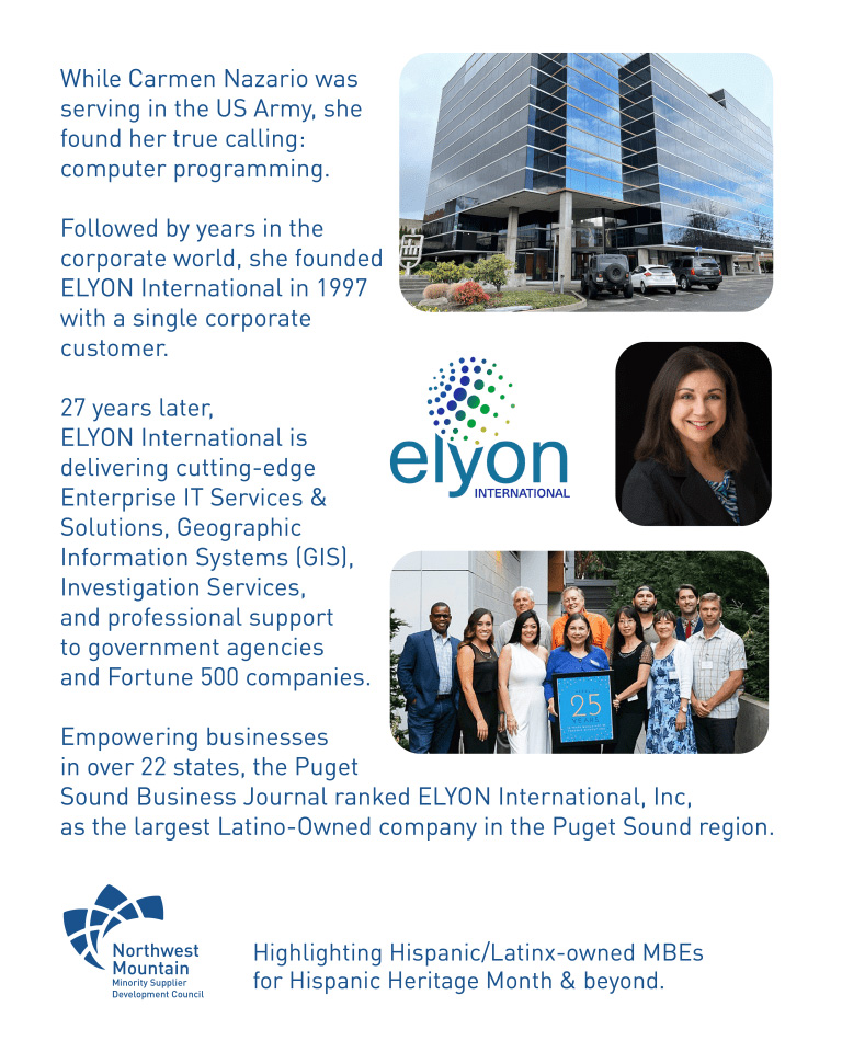 As of October 2024, nearly 20% of the Northwest Mountain Minority Supplier Development Council’s directory consists of Hispanic and/or Latinx businesses. Below, we have selected a few of these exceptional businesses to highlight during Hispanic Heritage Month and beyond: